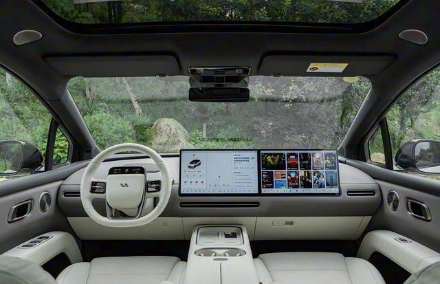 进入车内,理想i6采用15.7英寸中控屏与副驾娱乐屏组成的双联屏布局,搭配16.3英寸HUD抬头显示,形成「三屏交互」体系。中控台搭载高通骁龙8295P芯片,支持DeepSeek大模型语音交互,可实现方言识别、场景化服务(如点餐取餐)等智能功能。仪表台采用分层式设计,上部为软质搪塑材质,下部嵌入金属质感饰条,与门板上的Nappa真皮包裹形成材质对比。座椅方面,全车标配七层材质座椅,前排支持十点按摩、加热/通风功能,后排座椅同样配备加热/通风,右侧「皇后座椅」可一键放倒至135°仰角,配合腿托形成半躺姿态。